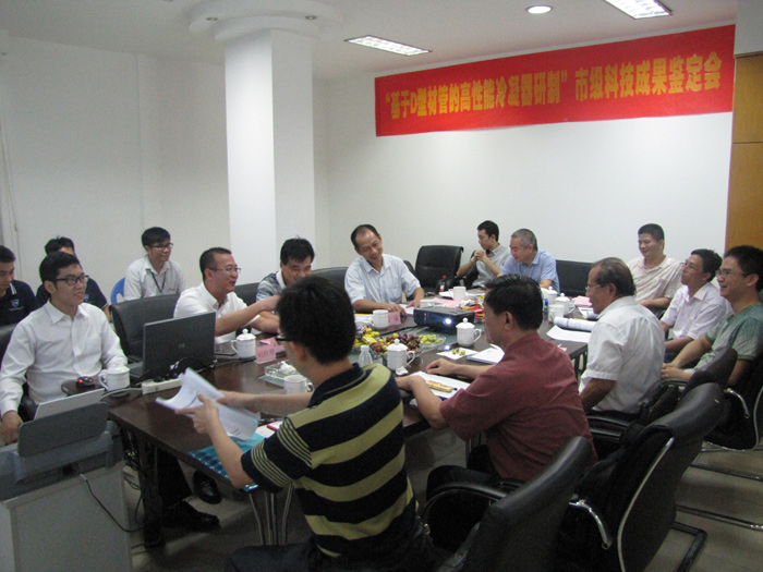 時日,由廣東機械工程學會梁榮光教授、廣州機械設計研究所張健民高工等7名專家組成的鑒定委員會,在揭陽市科技局洪鎮(zhèn)海副局長、黃銘鋒科長的主持下,進行D型材管冷凝器產(chǎn)品技術(shù)創(chuàng)新的成果鑒定。