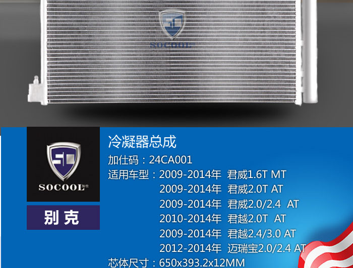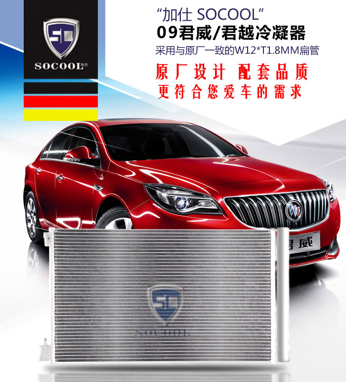 “德國加仕SOCOOL”09年君威/君越冷凝器全面改良升級--采用與原廠一致的W12MM扁管設計!現(xiàn)貨 歡迎訂購